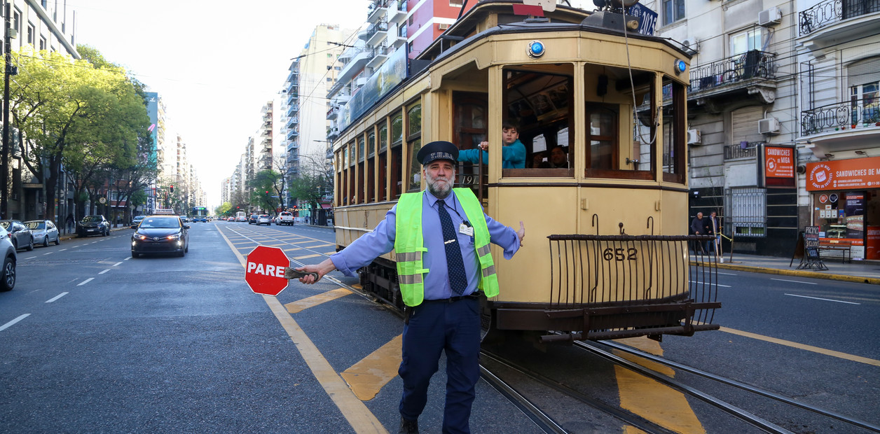 “Bienvenidos al Tramway Histórico de Buenos Aires. Es una creación de la Asociación Amigos del Tranvía, fundada hace casi 50 años con el propósito de recuperar el patrimonio tranviario argentino. Trabajamos por la vuelta del tranvía como medio de transporte público. Desde hace casi 45 años que de forma ininterrumpida, salvo en la época de la cuarentena, que solo los fines de semana y feriados realizamos estos paseos por las calles de Caballito”.