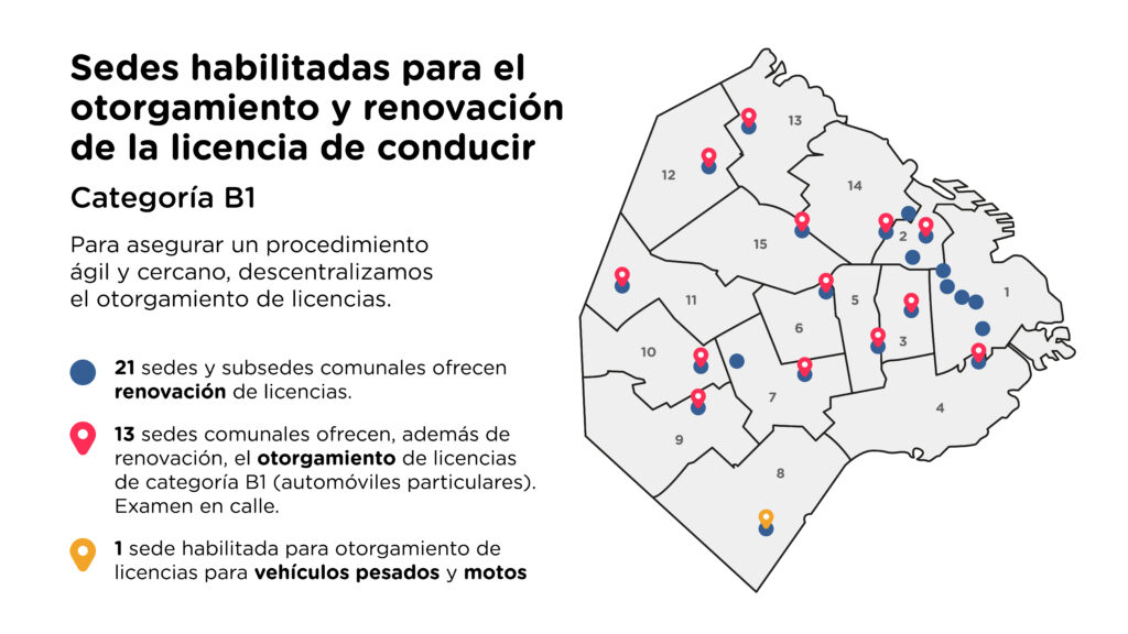 Así, el Gobierno porteño continúa con su plan de descentralización mediante el cual ya se sextuplicó la cantidad de sedes que otorgan la credencial y se duplicó la cantidad de espacios de renovación, se pasó de 10 a 21 dependencias existentes. En el barrio de Caballito, en la Comuna N° 6, se puede realizar este trámite y el de renovación de la licencia en la sede comunal ubicada en avenida Patricias Argentinas 277.