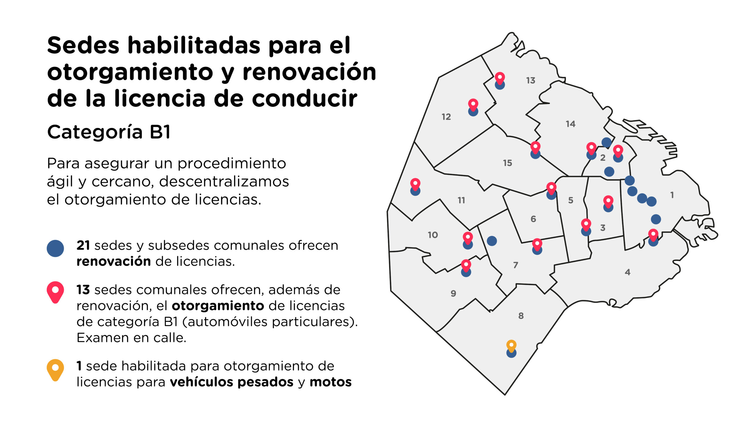 Así, el Gobierno porteño continúa con su plan de descentralización mediante el cual ya se sextuplicó la cantidad de sedes que otorgan la credencial y se duplicó la cantidad de espacios de renovación, se pasó de 10 a 21 dependencias existentes. En el barrio de Caballito, en la Comuna N° 6, se puede realizar este trámite y el de renovación de la licencia en la sede comunal ubicada en avenida Patricias Argentinas 277.
