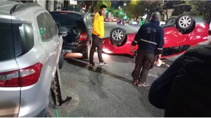 Un fuerte accidente ocurrió en la madrugada de este viernes en el barrio de Caballito, cuando un automovilista que conducía un Fiat Siena rojo perdió el control de su vehículo, impactó contra dos autos estacionados y terminó volcando sobre la avenida Juan Bautista Alberdi, a la altura de Emilio Mitre.