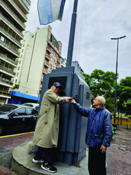 Izaron la enseña patria Carlos Susini, presidente de la Junta de Estudios Históricos del Caballito y Carlos Nucho Príncipe, destacado comerciante del barrio.