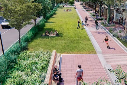 El espacio verde se expande a ocho cuadras de la avenida Honorio Pueyrredón, entre Gaona y Neuquén. Para lograr esto se intervinieron más de 23 mil metros cuadrados de superficie. Esta área antes estaba reservada para el tránsito vehicular, se crearon más de 16.600 metros de espacio público de los cuales 9500 metros son áreas verdes y otros 7.000 son espacios peatonales.