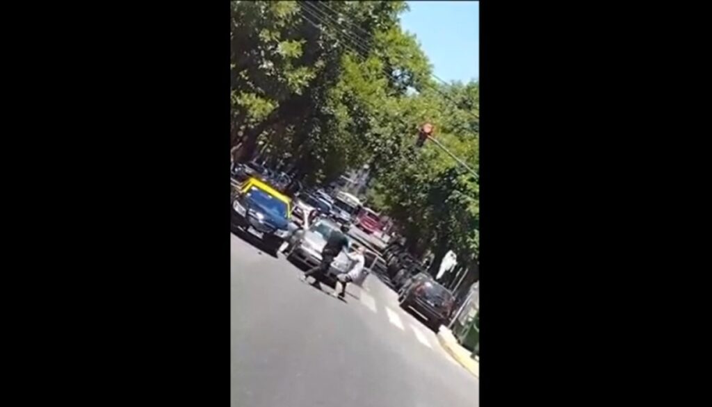 En las imágenes, registradas por un peatón con su celular, se puede ver cómo el conductor del auto gris saca un cuchillo y ataca al taxista. La agresión ocurrió después del enfrentamiento físico y le provocó al chofer varias heridas en la mano. La pelea duró pocos minutos y generó conmoción entre quienes transitaban la zona en ese momento.